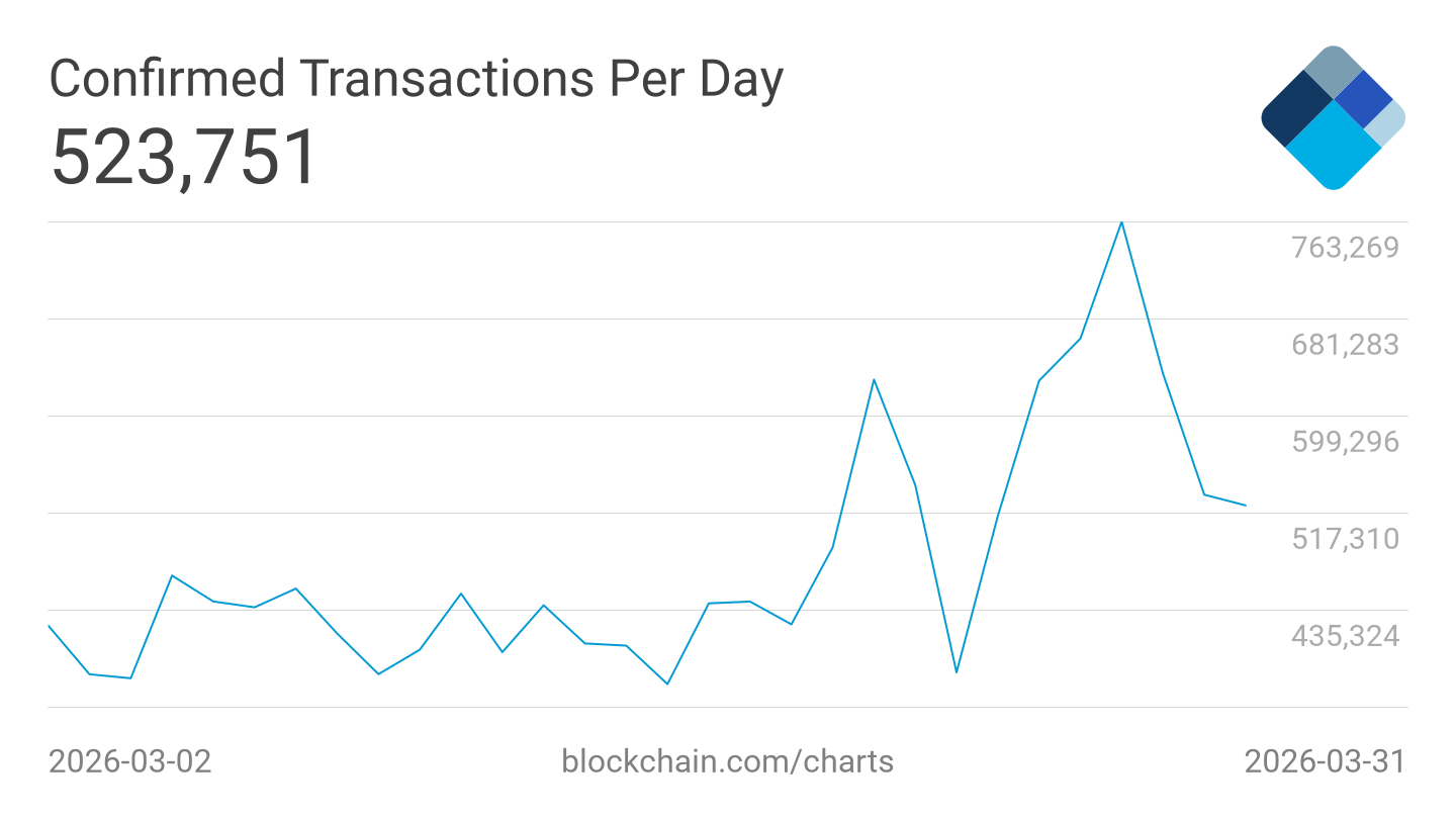 This can be observed in the confirmed transactions indicator within the BTC network, which has shown a gradual decline in activity, dropping from more than 700,000 transactions on March 27 to just above 500,000 currently. This suggests that, although price has recovered, network participation is not keeping pace, limiting the sustainability of the current demand.