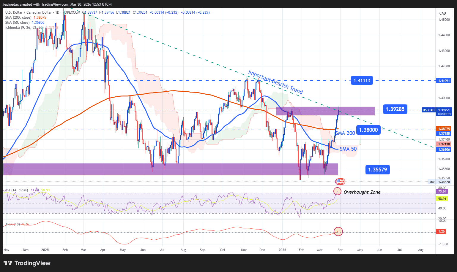 This factor remains critical, as stronger demand for the dollar could continue to weigh on currencies such as the Canadian dollar. If the DXY continues to push higher, it could translate into more consistent buying pressure in USD/CAD in the short term.