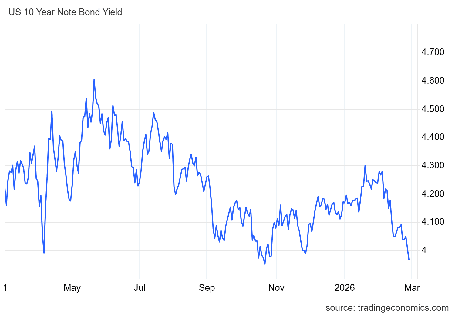 As the final week of February comes to a close, one of the most relevant developments has been the loss of attractiveness in US Treasury bonds. The 10-year yield has broken below the 4.00% level and is now fluctuating around 3.96%, moving further away from the recent highs near 4.3% seen in previous sessions. This pullback suggests a loss of momentum in yields and, consequently, a moderation in the relative appeal of the US fixed-income market.