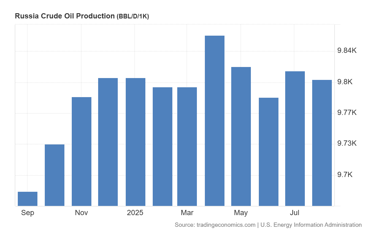 It is important to remember that, according to the latest available data, Russia produced roughly 9.8 million barrels per day in August, making it one of the three largest oil producers in the world. If a peace agreement leads to lifting economic sanctions, a full return of Russian crude to the market could intensify oversupply concerns.