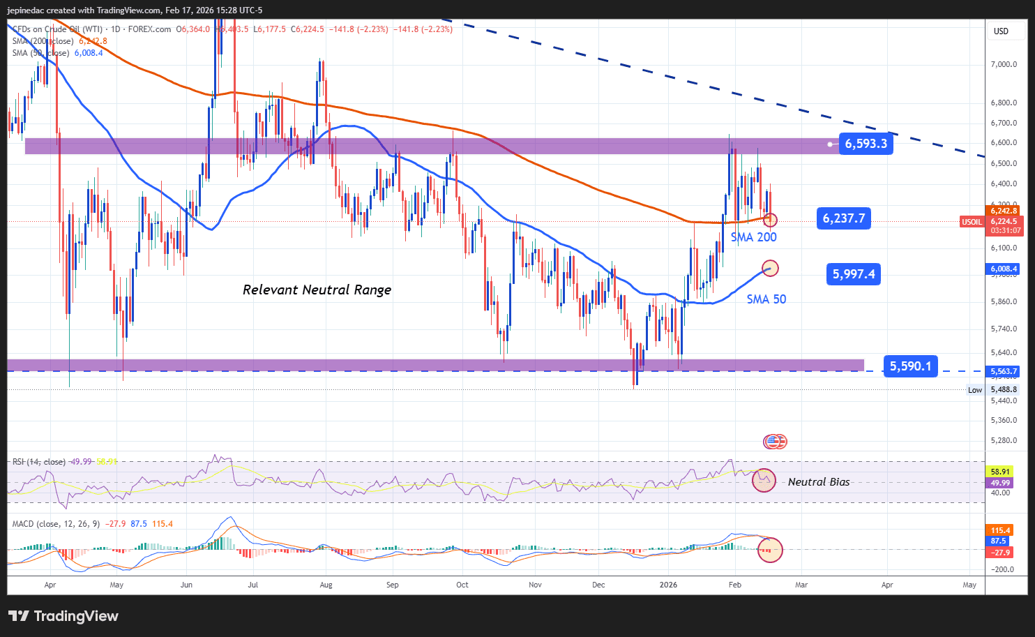 - The Sideways Range Gains Relevance: Over recent months, a consistent sideways range has become more evident between resistance near $65 per barrel and support around $55 per barrel. So far, recent price action has failed to break out of this range, keeping the dominant neutral scenario intact. Unless a clear directional breakout occurs, WTI is likely to continue trading within this structure, making it difficult to establish a more defined trend on the daily chart.
