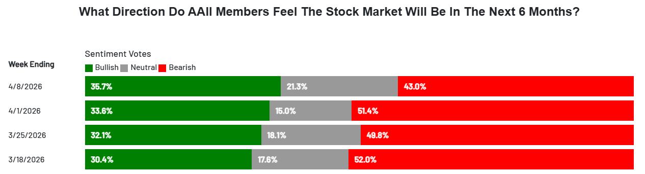Another key factor to consider is how the market is assessing equity performance over the coming months. This can be observed through the AAII Investor Sentiment Survey, which reflects expectations for the next six months.