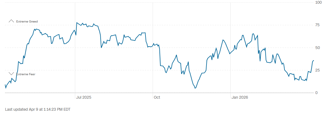 This effect has been clearly reflected in market sentiment indicators. The Fear and Greed Index has shown a consistent recovery, rising from around 14 points (extreme fear) to approximately 36 points, entering the “fear” zone. Although this does not represent a full recovery, it does signal an improvement in overall market sentiment, reducing demand for safe-haven assets and favoring renewed appetite for risk assets such as equities.