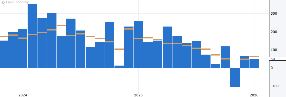 During tomorrow’s session, February 11, the United States will release its NFP employment data. Forecasts point to the creation of 66,000 new jobs in January, up from the 50,000 reported in December. If confirmed, this would support a gradual recovery in employment following the sharp contraction seen at the end of 2025, when job losses exceeded 100,000.