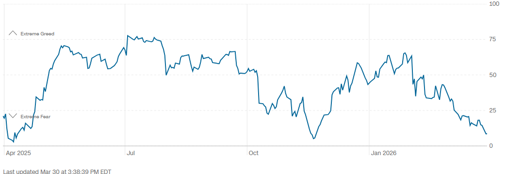 This has been reflected in market sentiment indicators such as the Fear and Greed Index, which has dropped to around 9 points, entering “extreme fear” territory and reaching levels not seen since November 2025.