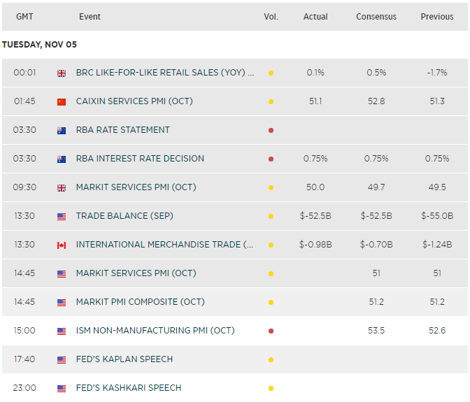 - A 40-odd pip rise by sterling against the dollar off lows had as much to do with weak, though not weaker than forecast business sentiment data out earlier. Markit’s service sector PMI printed at 50 in October vs. 49.7 expected and 49.5 in September. Downbeat details included a new business component that was the softest in 6 months and an all-sector orders index that fell at the fastest rate since 2009