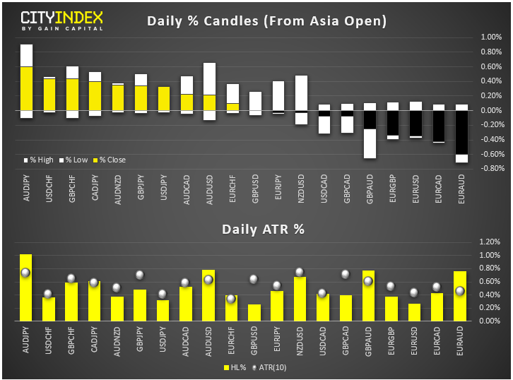 - A broad yen retreat also denotes participants continuing to relinquish aversive moves in favour of risk