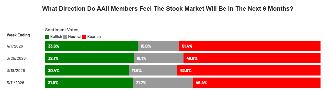 Despite recent short-term stability, the long-term outlook remains fragile. According to the AAII Investor Sentiment Survey, optimism for the next six months stands at 33.6%, neutrality at 15.0%, and pessimism at 51.4%, indicating that market sentiment remains clearly tilted toward the downside.