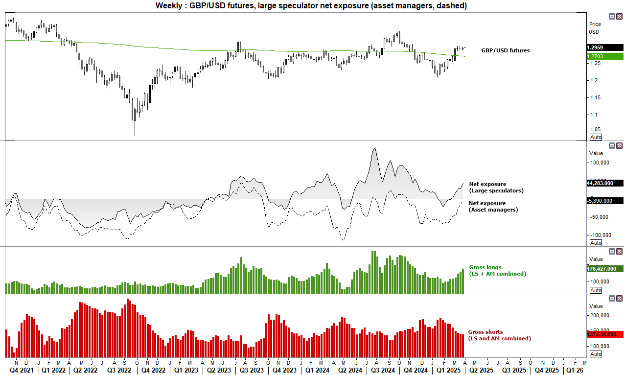 Large speculators pushed their net-long exposure to the highest level since November. Asset managers were on the cup of flipping to net-long exposure, with a gross-short exposure of just under -6k contracts. I suspect they will flip to net-long exposure should we see GBP/USD prices continue higher this week.