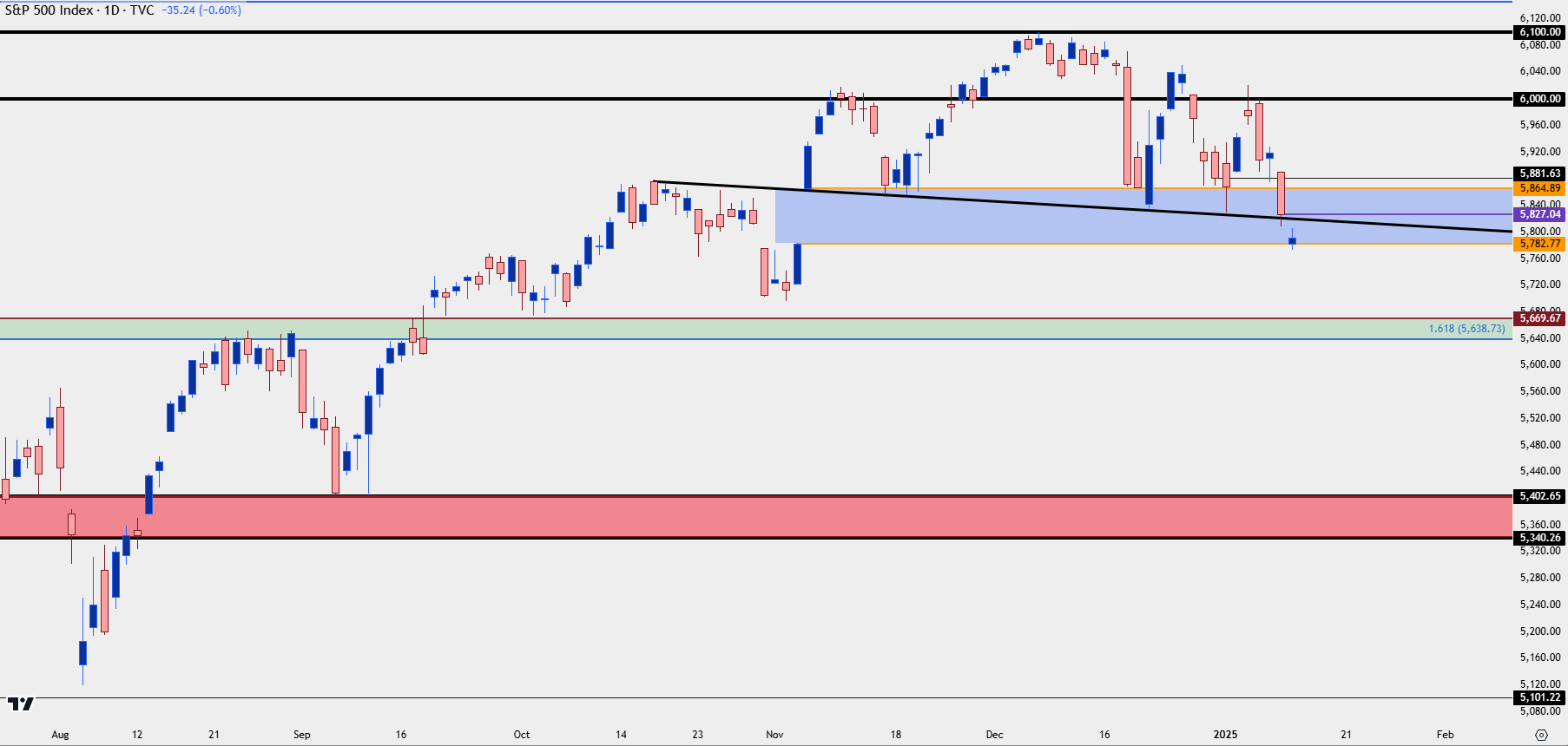Stocks continue to pullback in early-2025 trade and the first week of the New Year was a red week for the S&P 500, as the index shed almost 2% despite only being open four days with Thursday’s memorial in honor of former U.S. President, Jimmy Carter.
