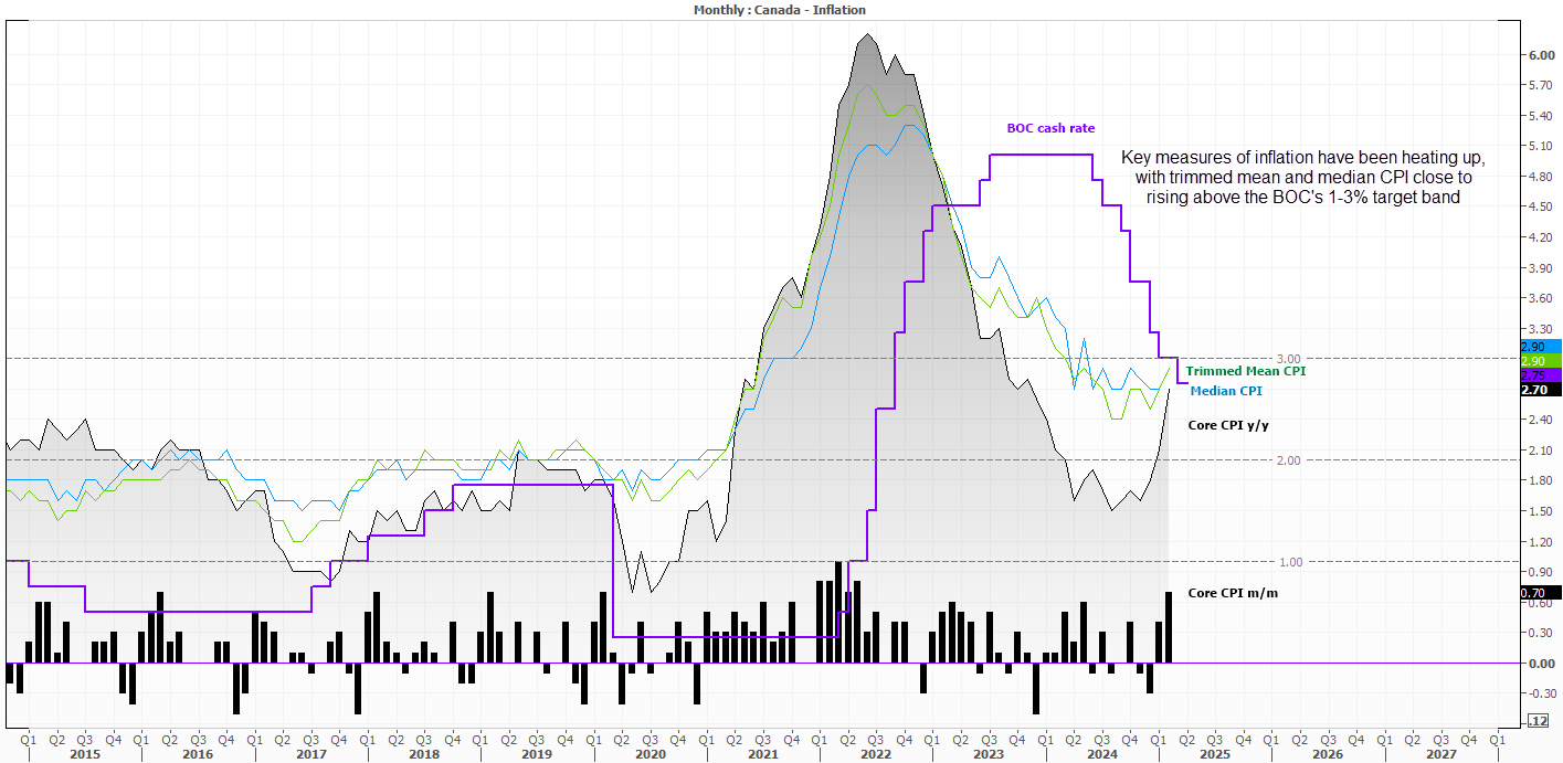 The Bank of Canada (BOC) are likely to hold their cash rate at 2.75% on Wednesday. Their March statement outlined expectations for higher inflation due to the end of the sales tax break, alongside higher inflation expectations due to the trade war. And as the BOC have already slashed seven times this cycle, it remains debatable as to whether there is any appetite for further easing at all.