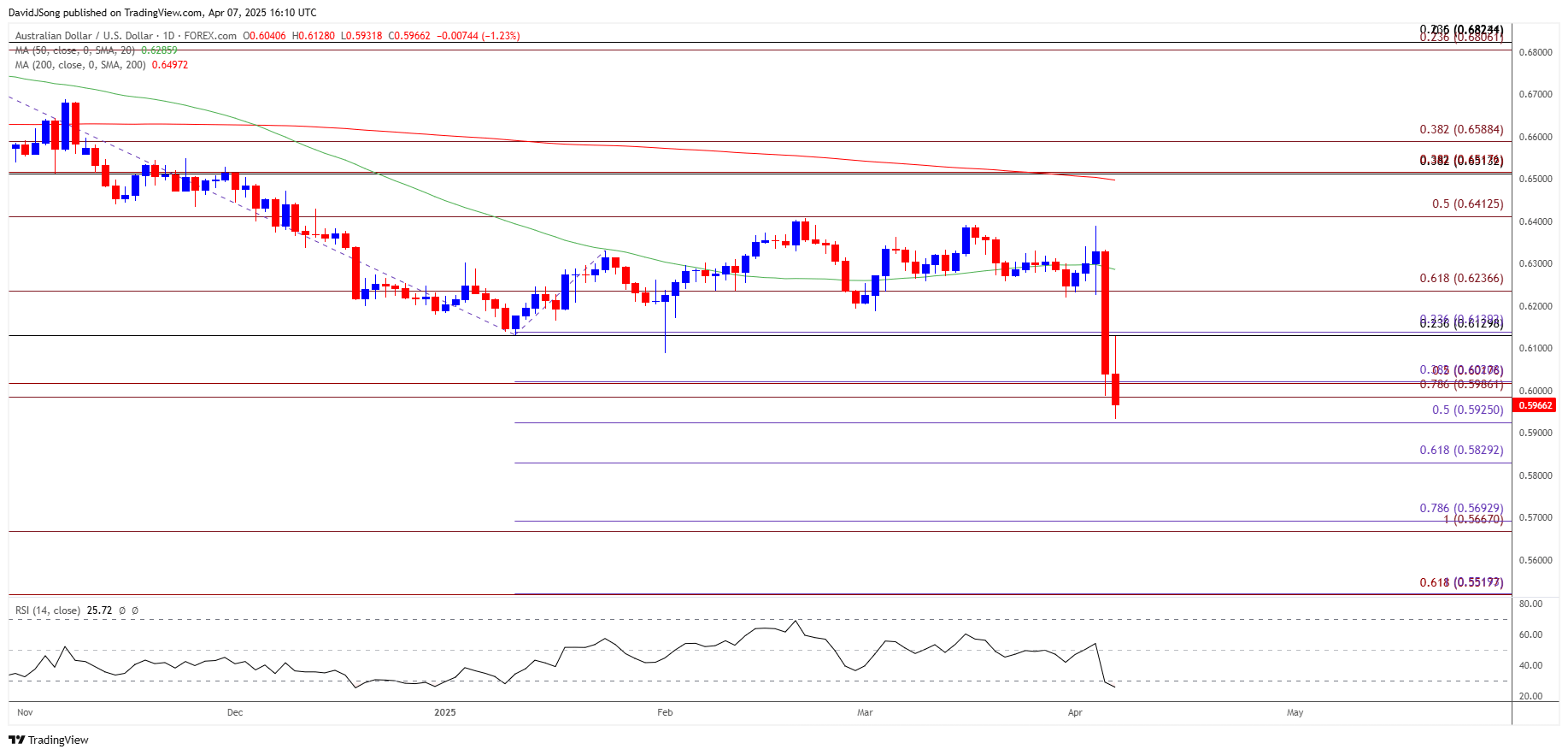 Keep in mind, AUD/USD marked the largest single-day decline since 2020 after failing to push back above the March high (0.6391), with the exchange rate clearing the February low (0.6088) as China, Australia’s largest trading partner, announced reciprocal tariffs on the US.
