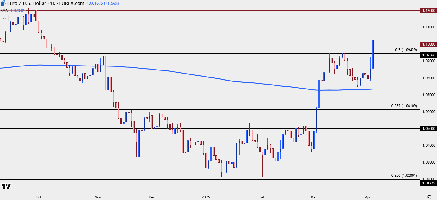 EUR/USD had a very strong start to March and April is showing out in a similar way. The pair has put in a sizable breakout on the back of President Trump’s tariff announcement yesterday afternoon, and already the U.S. Dollar is nearing the same support that was in-play last Q3, just before the USD reversal took over.