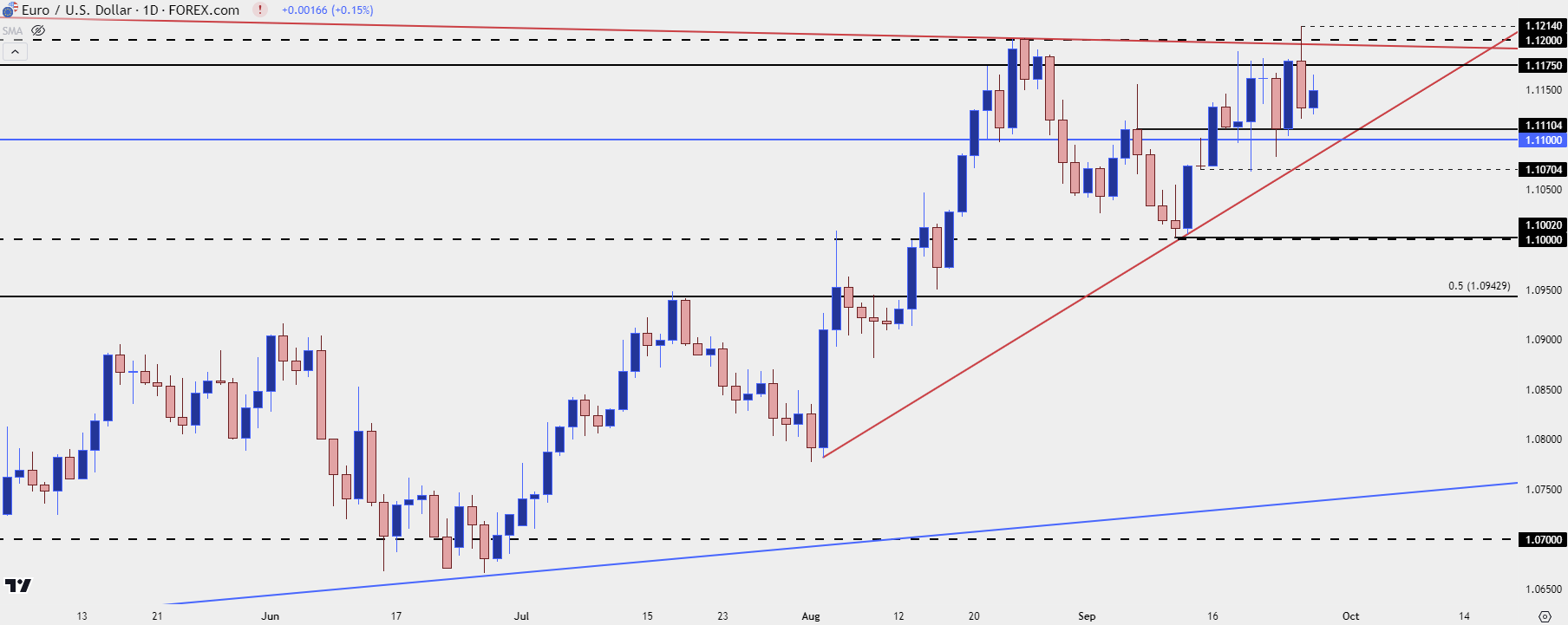 But if we look at EUR/USD in Q3 it would be difficult to muster anything other than a bullish outlook. Buyers have simply continued to drive-higher throughout the quarter with continued highs and lows.