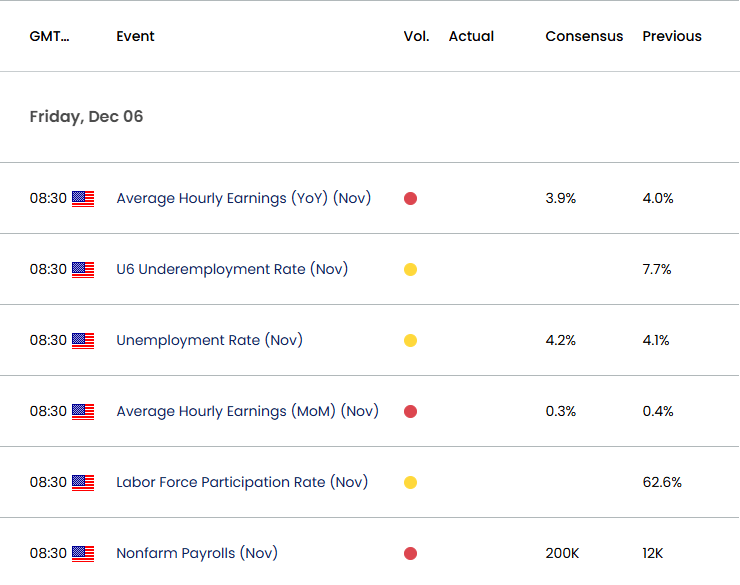 Nevertheless, data prints coming out of the US may sway gold prices as the Federal Reserve pursues a neutral stance, and the US Non-Farm Payrolls (NFP) report may push the central bank to the sidelines as the update is anticipated to show a 200K rise in November.