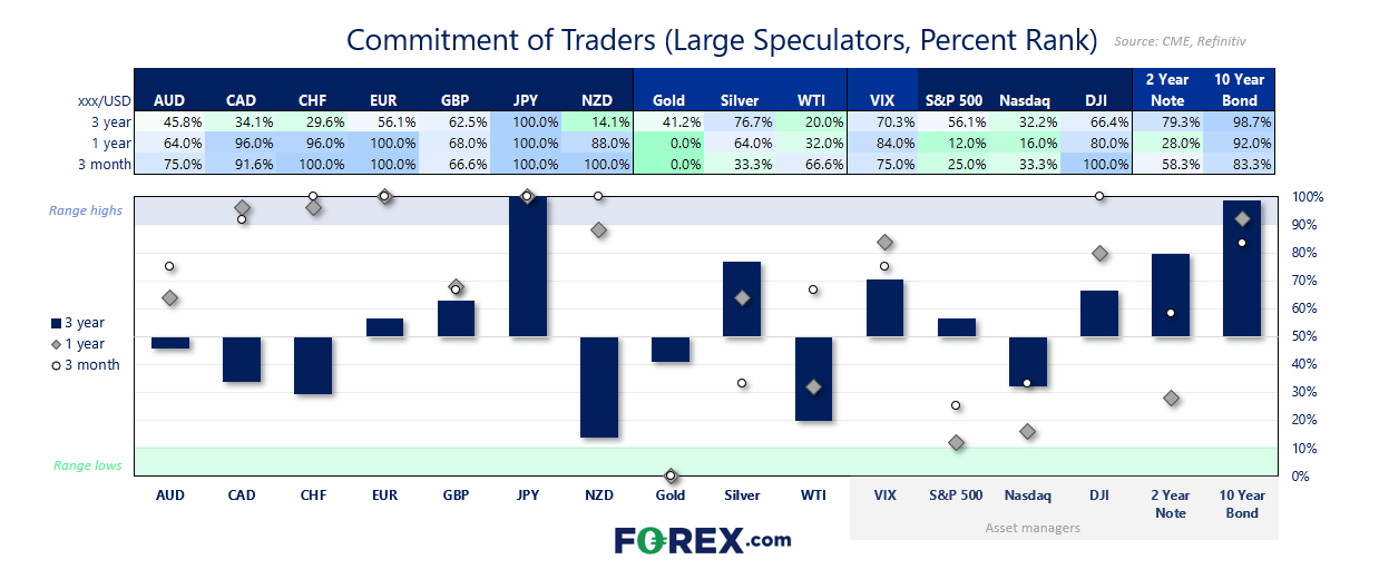 - Asset managers held a net-short of 3,000 contracts on DXY — their most bearish since October
